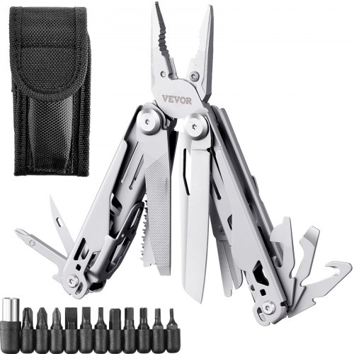 VEVOR 17-In-1 Multitool Pliers, Multi Tool Pliers, Cutters, Knife, Scissors, Ruler, Screwdrivers, Wood Saw, Can Bottle Opener, with Safety Locking and Sheath, for Survival, Camping, Hunting and Hiking