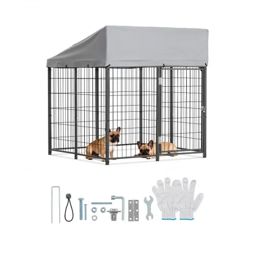 VEVOR Outdoor Dog Kennel, 1.12 x 1.15 x 1.25 m Large Dog Kennel with Secure Lock, Outside Dogs Enclosures with UV-Resistant & Waterproof Roof Cover, Heavy Duty Pet Crate Cage Run for Large Dogs