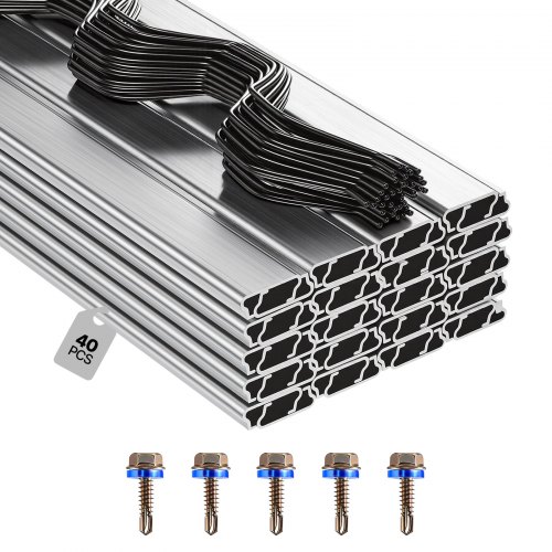 VEVOR Greenhouse Spring Wire and Lock Channel, 40 Packs 2m PVC-Coated Wiggle Wire & Aluminum Alloy Channel Bundle Kit with Included Screws, 1.2mm Thickened, Poly Film & Shade Cloth Attachments