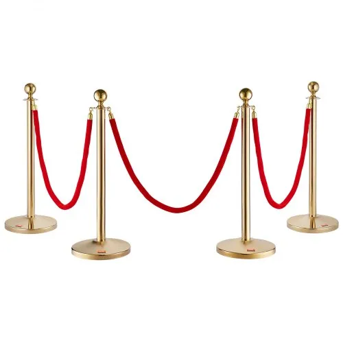 VEVOR 4PCS Gold Stanchion Posts Queue, 38 Inch Red Velvet Rope, Crowd Control Barriers Queue Line Rope, Barriers for Party Supplies