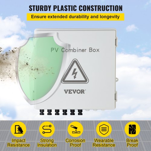 VEVOR Solar Combiner Box PV Combiner 15A 6 String Plastic for Solar Panel Kit