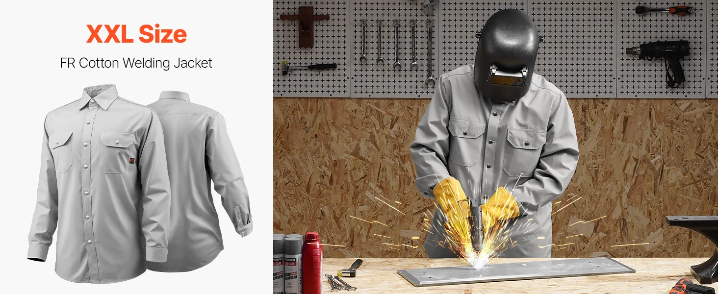 Versatile Use: Ideal for welders, fitters, steelworkers, electricians, and other industrial workers, this flame-resistant welding safety jacket is available in M/L/XL/XXL sizes, ensuring a comfortable fit for any body type. Choose the right size to help you tackle heavy-duty tasks with ease and confidence.