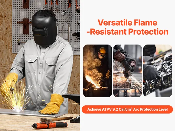 This versatile flame-resistant cotton welding jacket offers exceptional protection, achieving an ATPV 9.2 Cal/cm² arc protection level, effectively resisting high temperatures and flames.