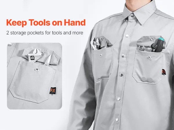 Equipped with 2 pockets, our heat-resistant jacket provides storage space for your essential tools and personal items, ensuring they are safe and easily accessible, keeping you ready for the task at hand.