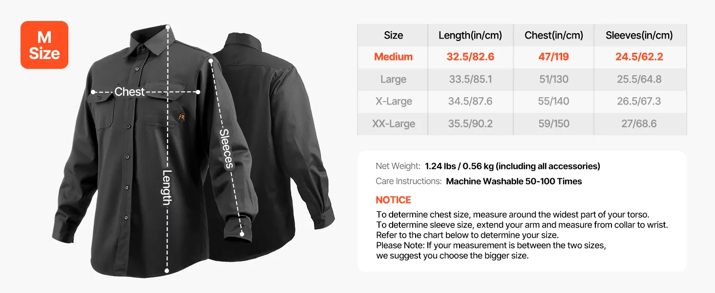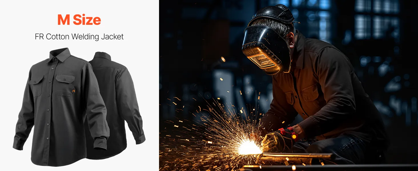 Versatile Use: Ideal for welders, fitters, steelworkers, electricians, and other industrial workers, this flame-resistant welding safety jacket is available in M/L/XL/XXL sizes, ensuring a comfortable fit for any body type. Choose the right size to help you tackle heavy-duty tasks with ease and confidence.