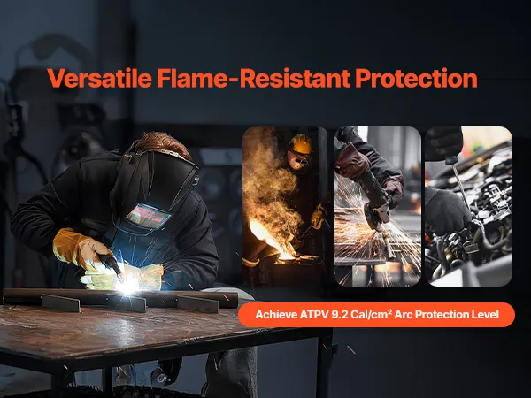 This versatile flame-resistant cotton welding jacket offers exceptional protection, achieving an ATPV 9.2 Cal/cm² arc protection level, effectively resisting high temperatures and flames.