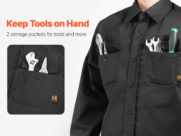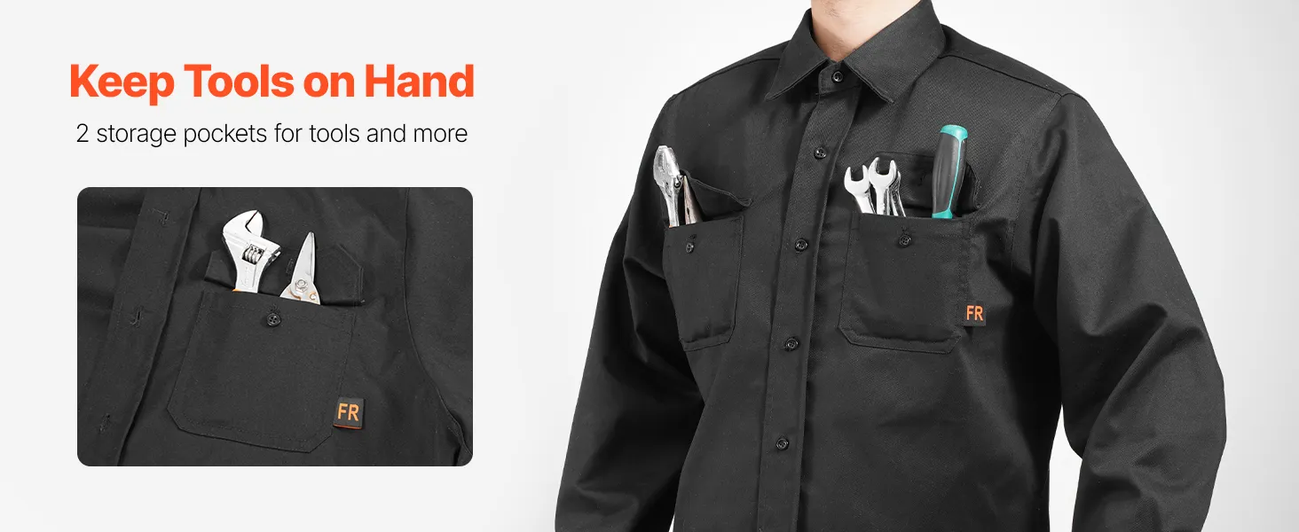 Equipped with 2 pockets, our heat-resistant jacket provides storage space for your essential tools and personal items, ensuring they are safe and easily accessible, keeping you ready for the task at hand.