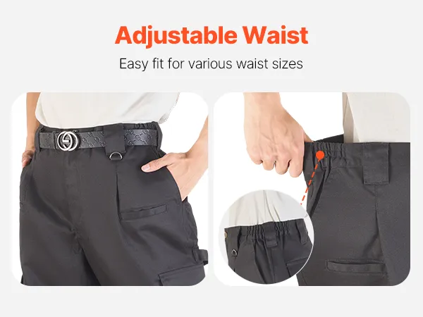 The flame-resistant pants for men feature a dual design with the elastic waistband and belt loops, accommodating various body types and waist sizes. You can adjust the fit using the stretchy waistband alone or with a belt for added flexibility.