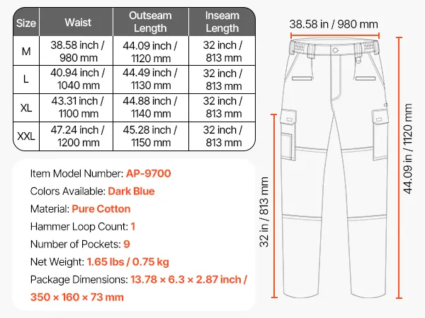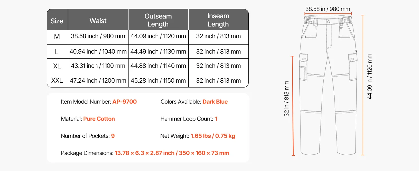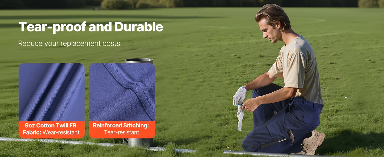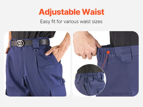 VEVOR FR Pants for Men, 100% Cotton, Flame-Resistant Cargo Pants with Multi-Pockets and Elastic Waist, Reinforced Tear-proof Stitching, Ideal for Welding Work and Casual Wear, M Size, Dark Blue