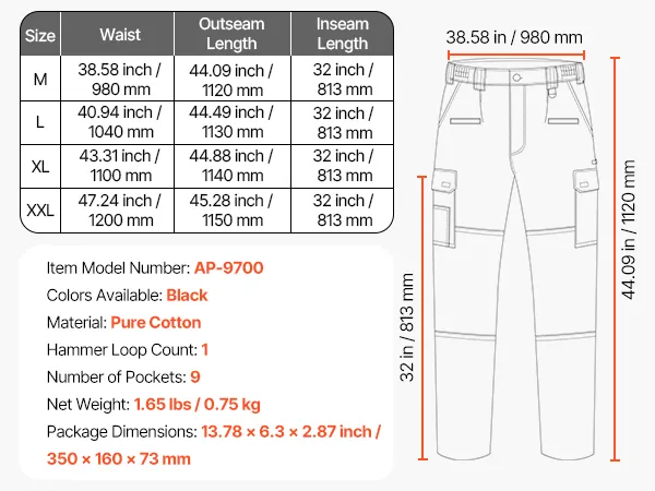 VEVOR FR Pants for Men, 100% Cotton, Flame-Resistant Cargo Pants with Multi-Pockets and Elastic Waist, Reinforced Tear-proof Stitching, Ideal for Welding Work and Casual Wear, M Size, Black