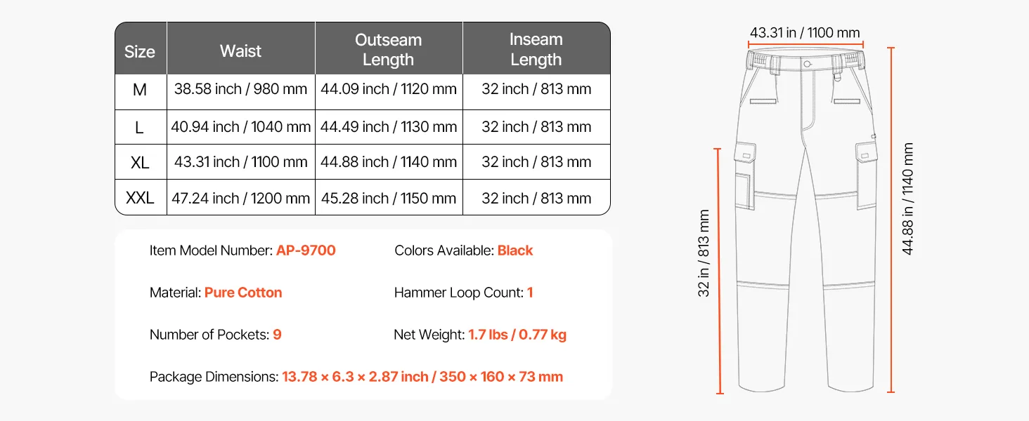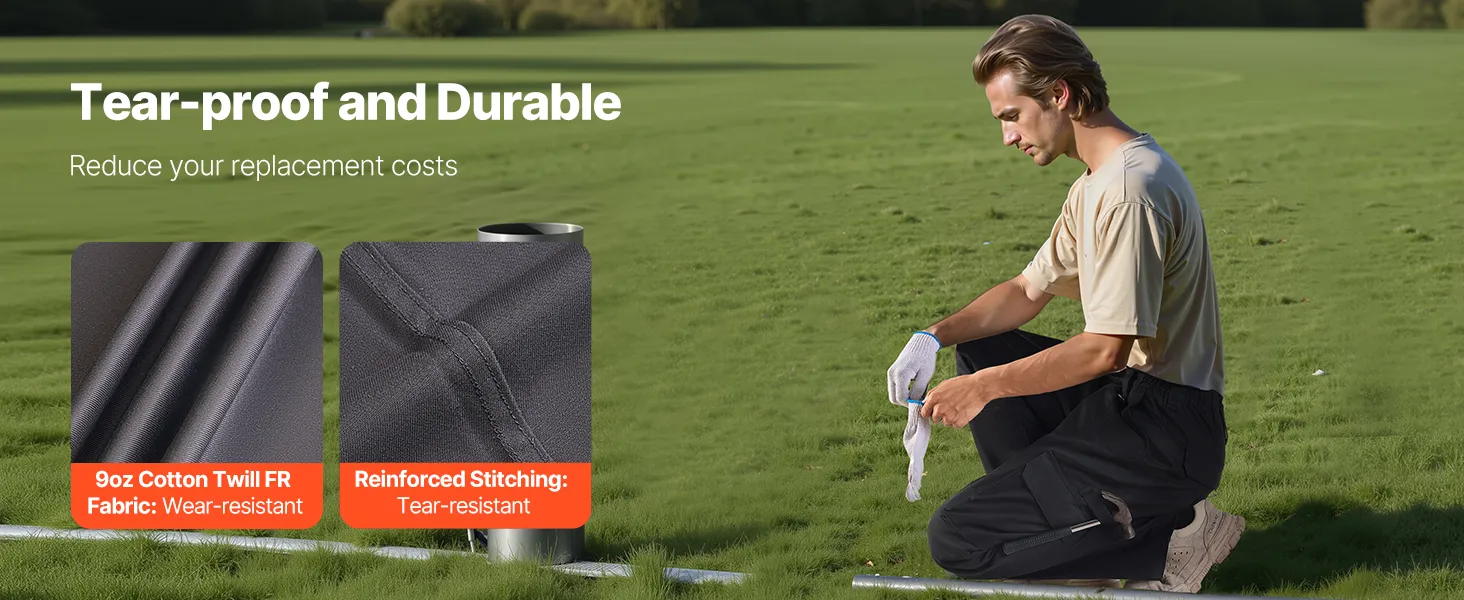 VEVOR FR Pants for Men, 100% Cotton, Flame-Resistant Cargo Pants with Multi-Pockets and Elastic Waist, Reinforced Tear-proof Stitching, Ideal for Welding Work and Casual Wear, XL Size, Black
