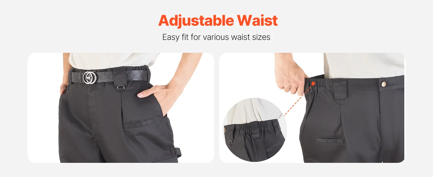 The flame-resistant pants for men feature a dual design with the elastic waistband and belt loops, accommodating various body types and waist sizes. You can adjust the fit using the stretchy waistband alone or with a belt for added flexibility.