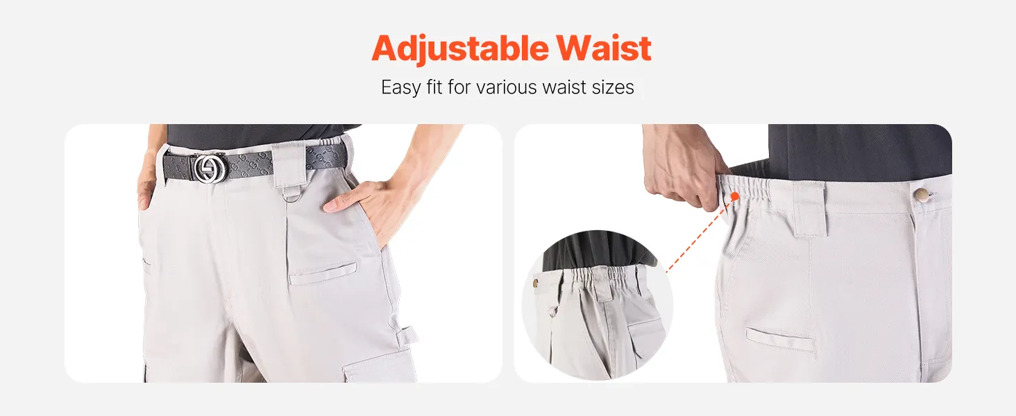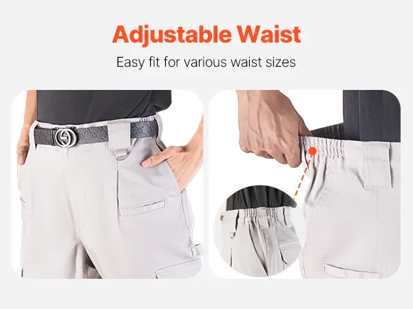 The flame-resistant pants for men feature a dual design with the elastic waistband and belt loops, accommodating various body types and waist sizes. You can adjust the fit using the stretchy waistband alone or with a belt for added flexibility.