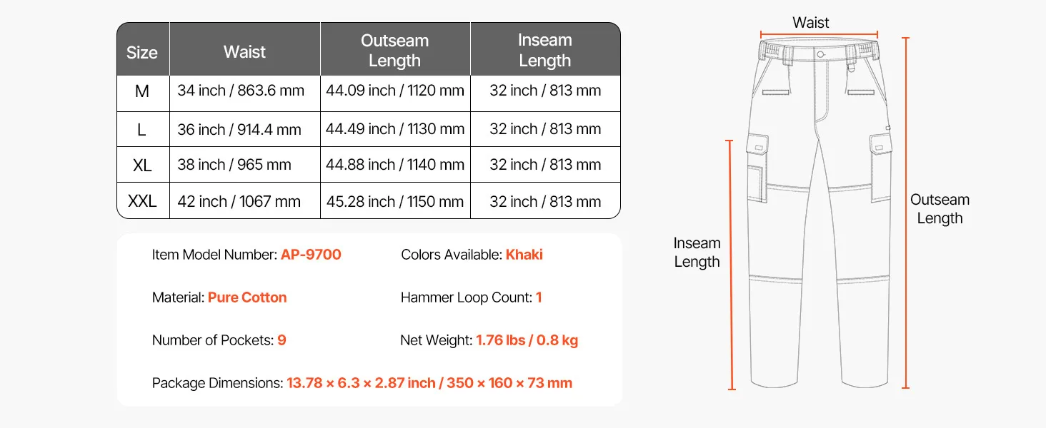 VEVOR FR Pants for Men, 100% Cotton, Flame-Resistant Cargo Pants with Multi-Pockets and Elastic Waist, Reinforced Tear-proof Stitching, Ideal for Welding Work and Casual Wear, XXL Size, Khaki