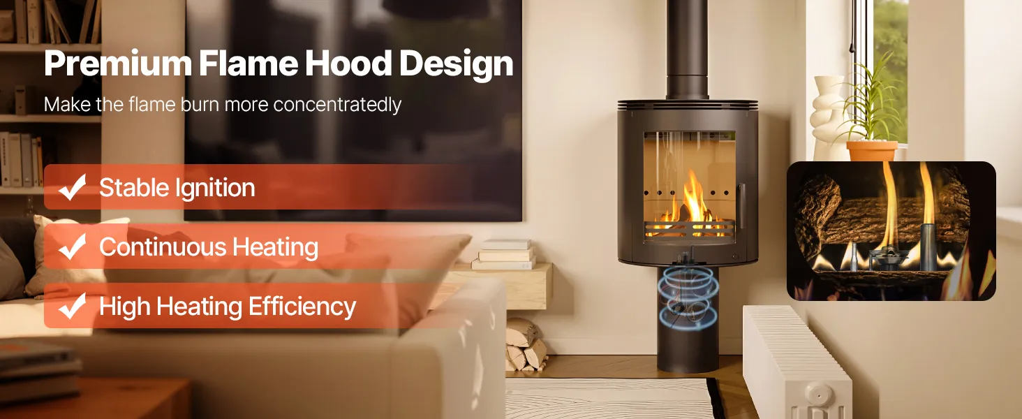 Our fireplace gas pilot assembly features a premium flame hood design, making the powerful flame burn more steadily and realizing fast and complete combustion. The steady flame continuously delivers high heat energy, greatly enhancing heating efficiency.