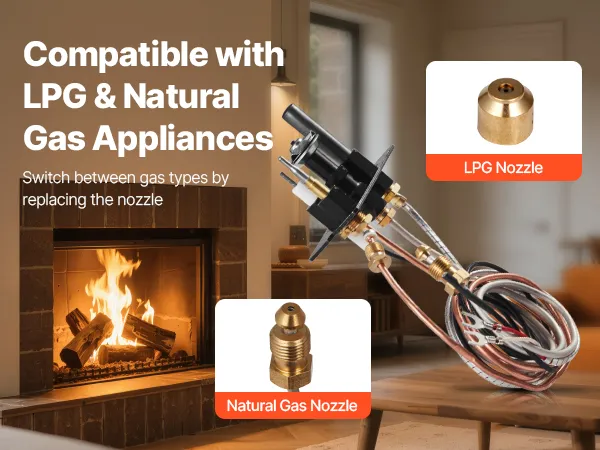 OEM Replacement Models: This natural & liquefied gas fireplace pilot assembly complies with OEM standards and can replace multiple original models, including 10002265, 10002264, and SRV10002264. It only needs a nozzle replacement to switch gas types