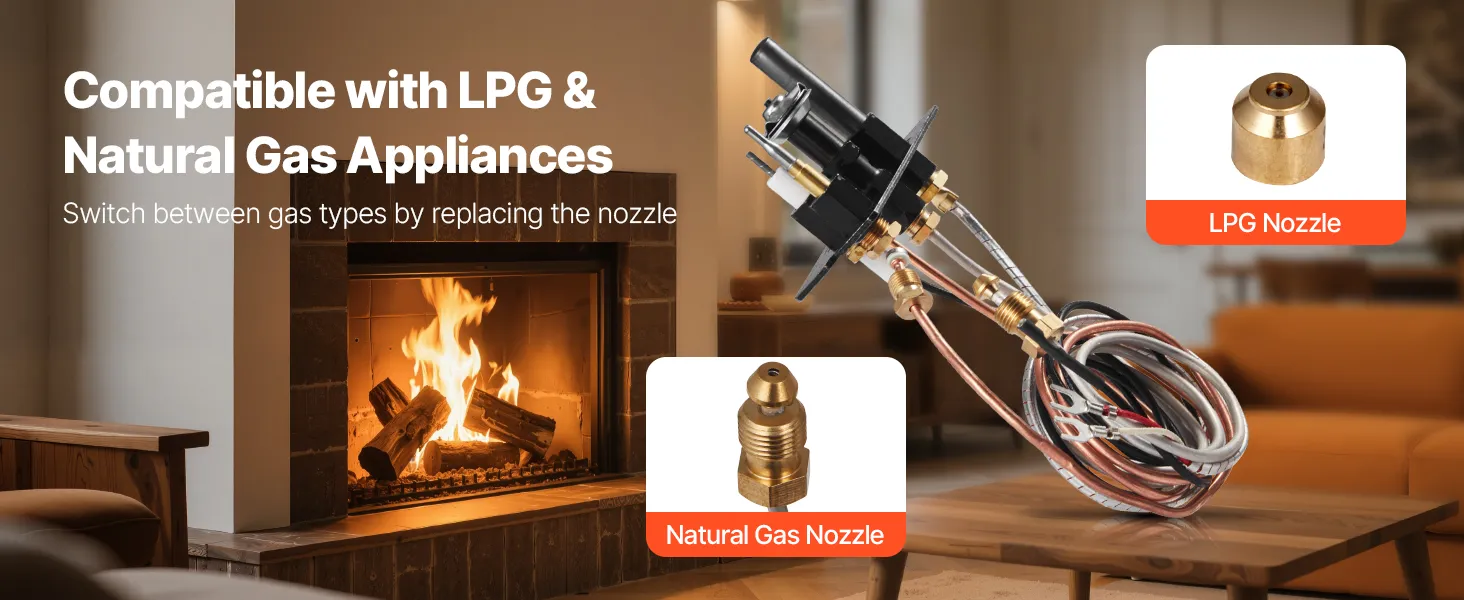 Our gas fireplace pilot assembly is designed for liquefied gas and natural gas appliances, you can switch gas sources simply by changing the nozzle. It supports efficient and clean combustion to lower indoor air pollution, contributing to a healthier living space.