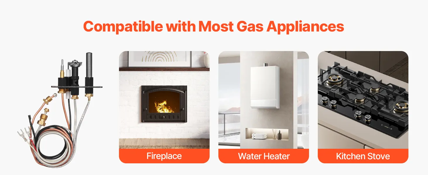 This gas pilot ignition assembly is compatible with most mainstream fireplaces on the market. It also fits household water heaters and kitchen stoves, easily meeting the ignition needs of various gas appliances.
