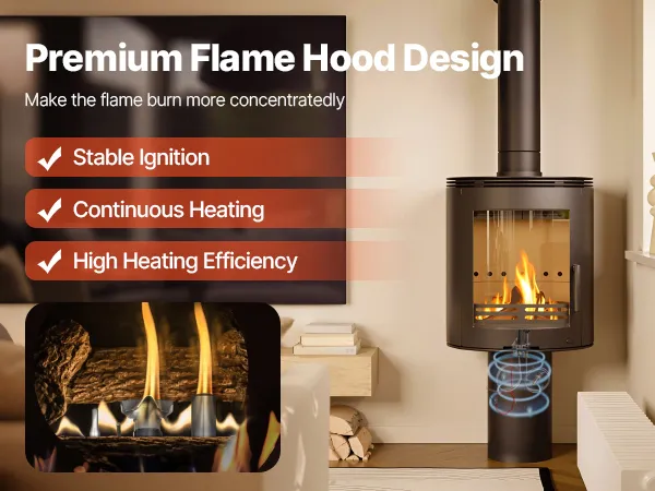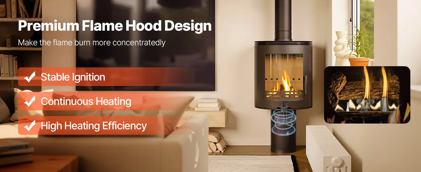Our fireplace gas pilot assembly features a premium flame hood design, making the powerful flame burn more steadily and realizing fast and complete combustion. The steady flame continuously delivers high heat energy, greatly enhancing heating efficiency.