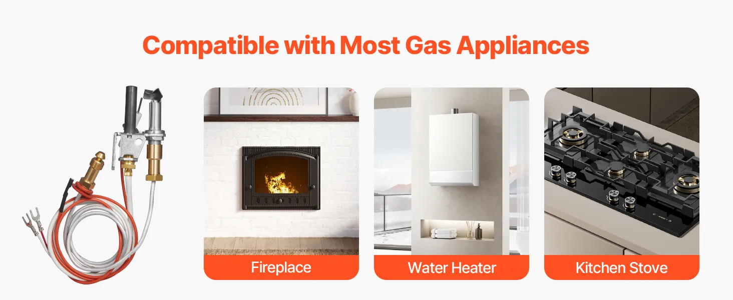 This gas pilot ignition assembly is compatible with most mainstream fireplaces on the market. It also fits household water heaters and kitchen stoves, easily meeting the ignition needs of various gas appliances.