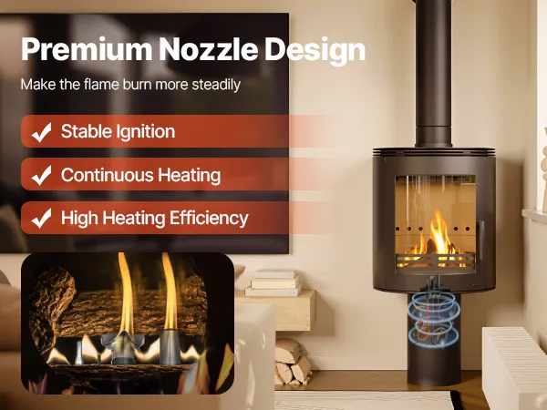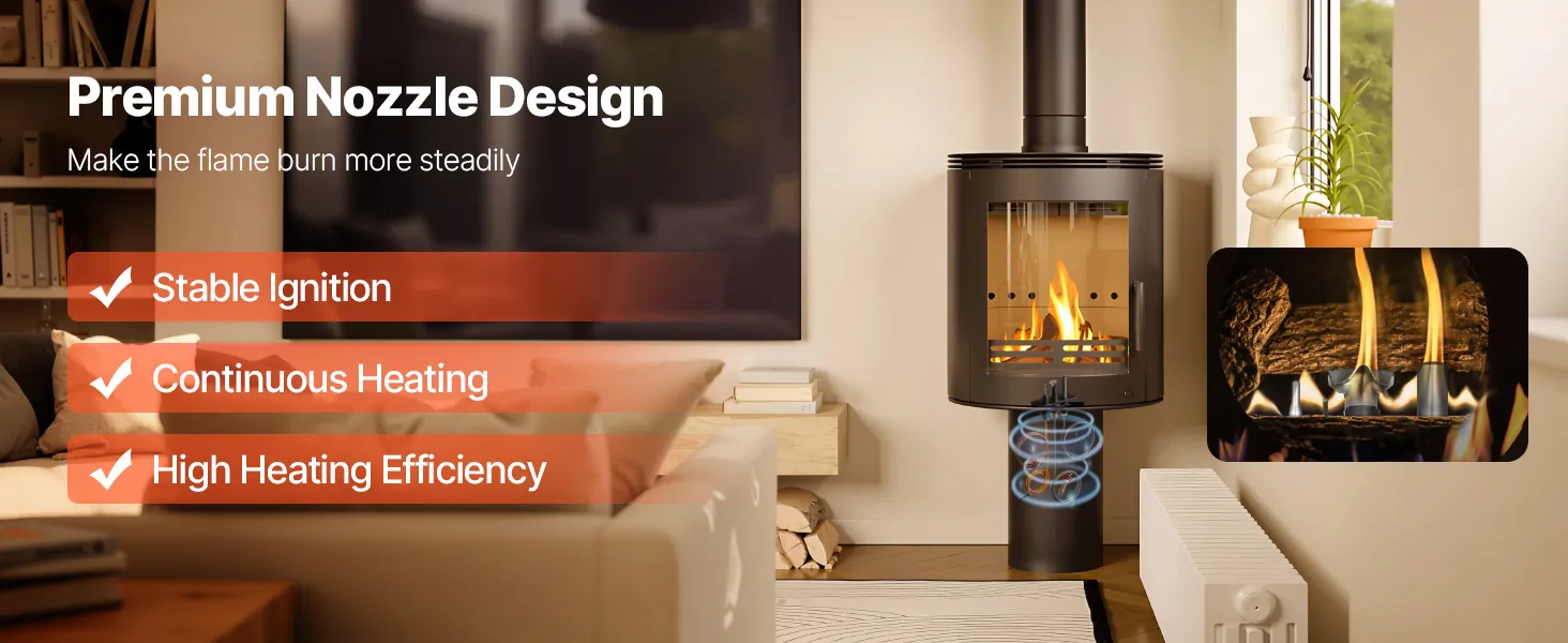 Our fireplace gas pilot assembly features a premium nozzle design, making the powerful flame burn more steadily and realizing fast and complete combustion. The steady flame continuously delivers high heat energy, greatly enhancing heating efficiency.