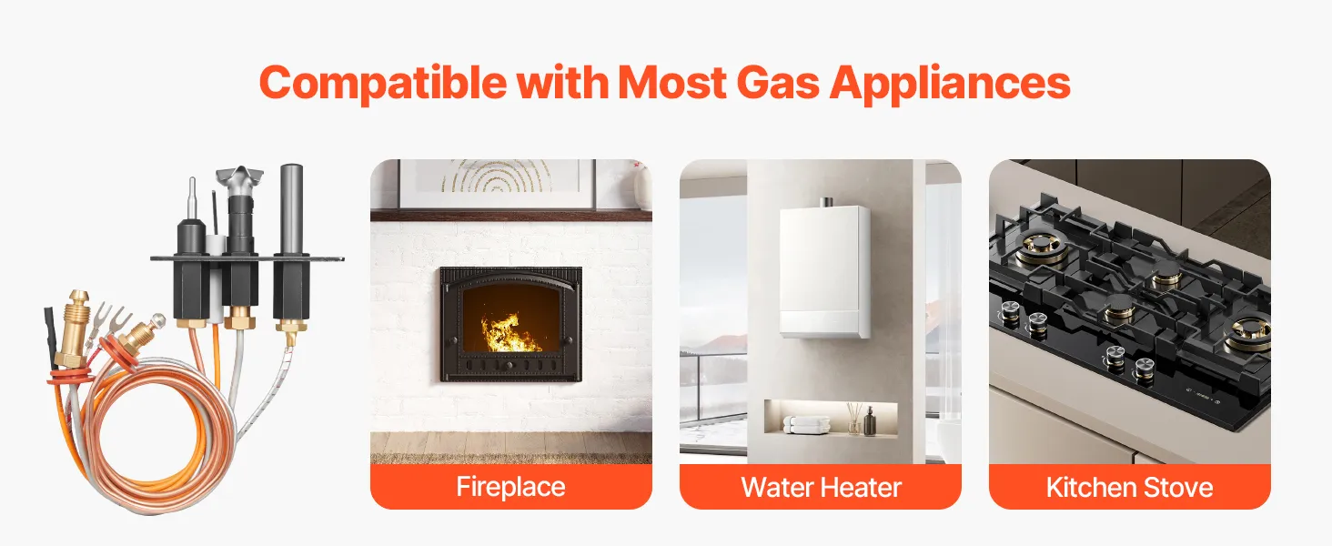 This gas pilot ignition assembly is compatible with most mainstream fireplaces on the market. It also fits household water heaters and kitchen stoves, easily meeting the ignition needs of various gas appliances.