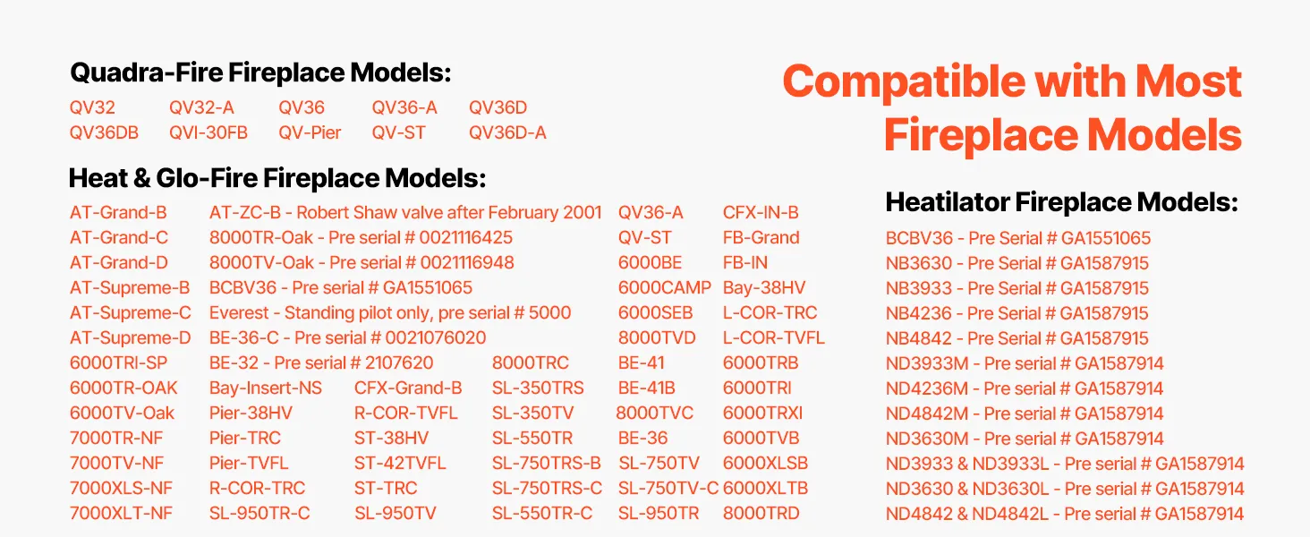 Wide Compatibility: This gas pilot ignition assembly is widely used and compatible with most mainstream fireplaces. It not only fits the Quadra-Fire, Heat & Glo, and Heatilator fireplaces, but also fits home water heaters and kitchen stoves
