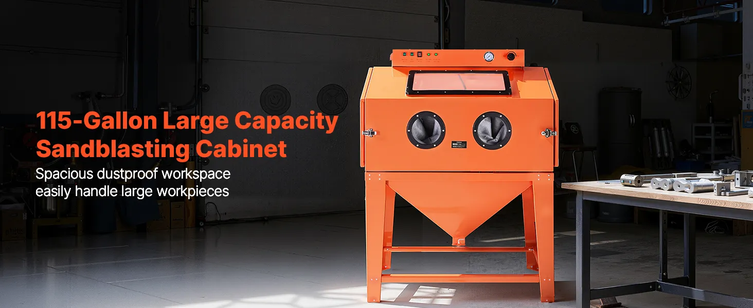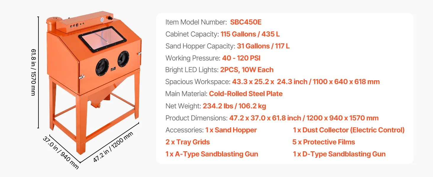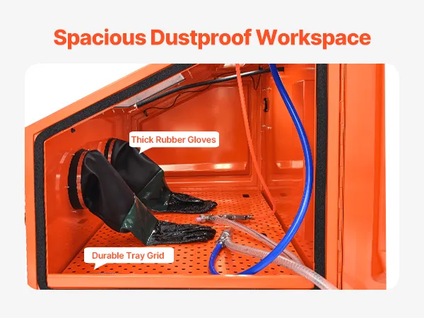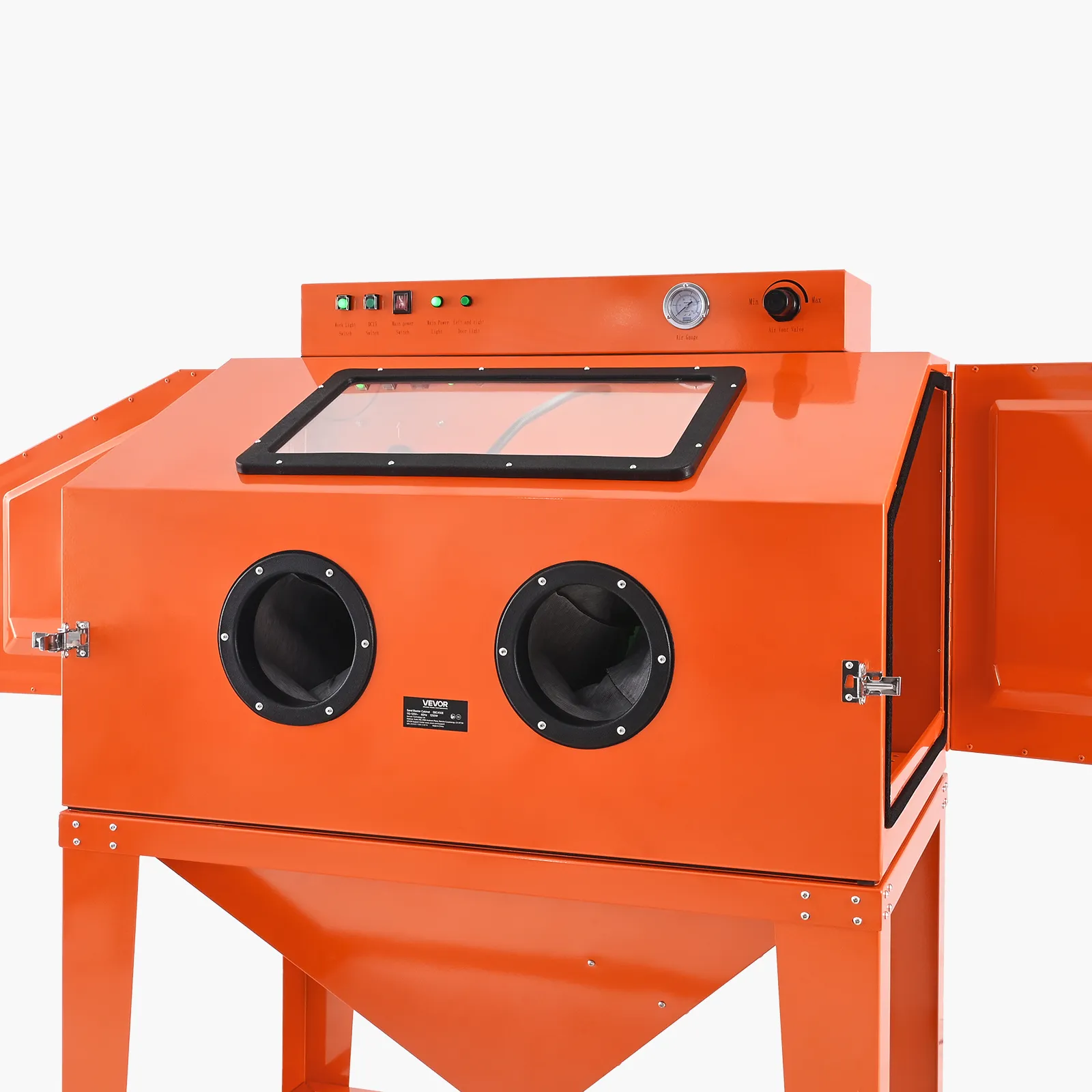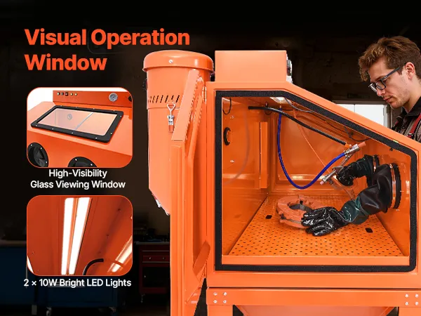 Spacious for Oversized Parts: Tackle large projects with ease inside our massive 1100 x 640 x 618mm interior, the cabinet offers a generous 435L capacity work area and 117L media hopper. Built with heavy-duty cold-rolled steel, this sandblasting cabinet is made to withstand the demands of daily shop use