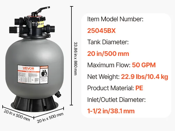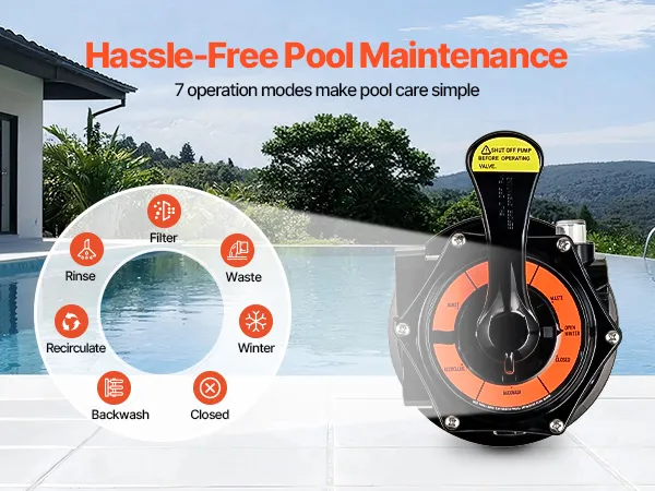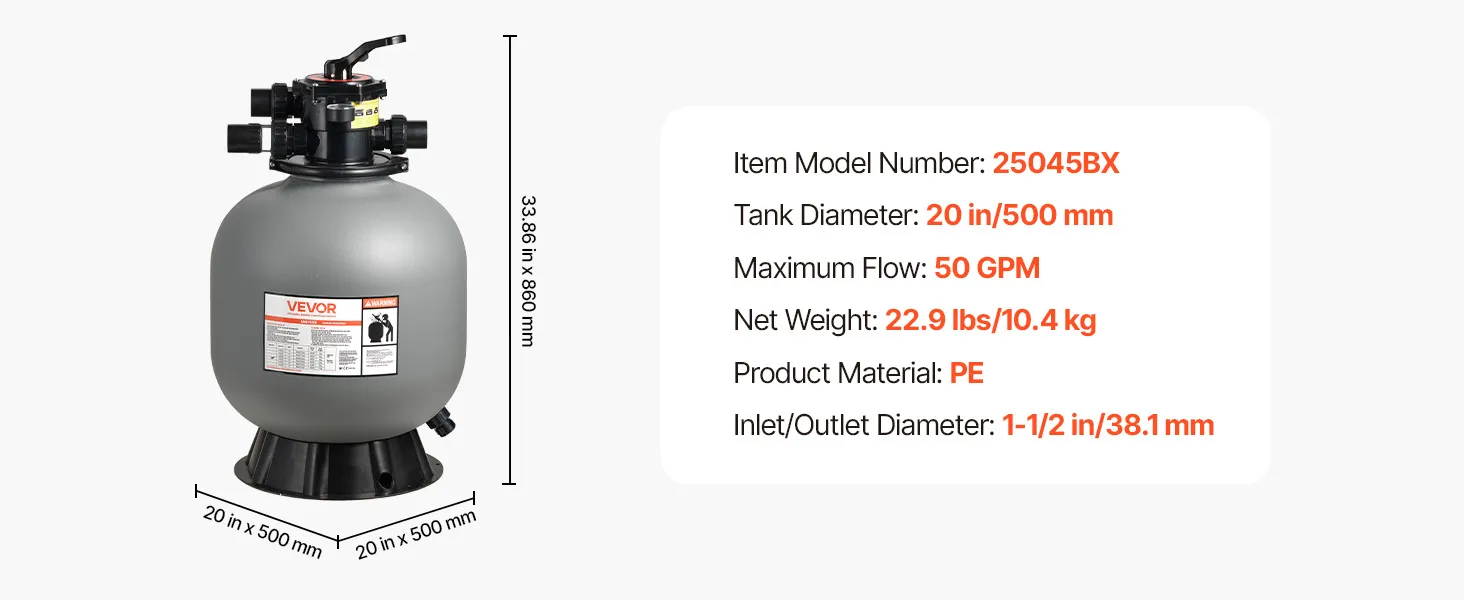 7 Modes, Easy to Operate: This sand filter for above ground pools features 7 simple modes: Filter, Backwash, Rinse, Recirculate, Waste, Winter, and Closed. We recommend using #20 silica sand for optimal filtration performance