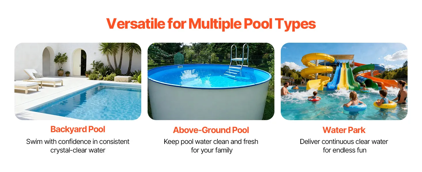 Meet All Your Pool Needs: Our pool sand filter system is versatile and works with all above-ground and in-ground pools, backyard pools, indoor villa pools, gym pools, and hotel pools