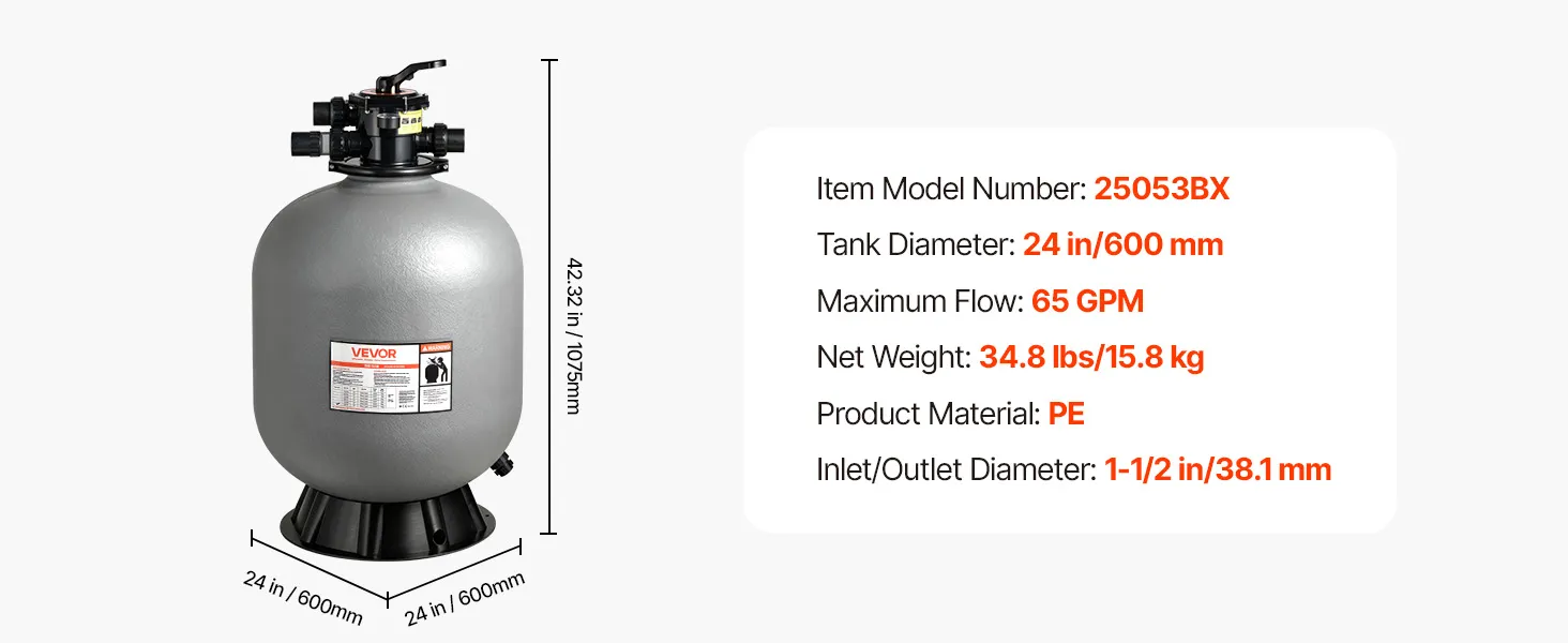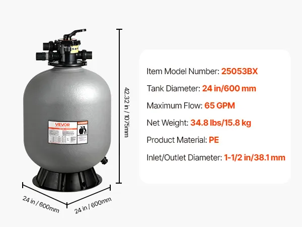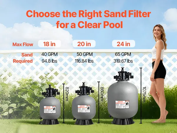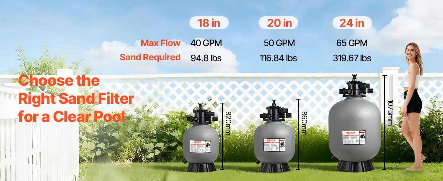 Available in 18-inch, 20-inch, and 24-inch models, this swimming pool sand filter lets you choose the right size for your pool setup. Get a filtration system that fits your space and matches your swimming needs.