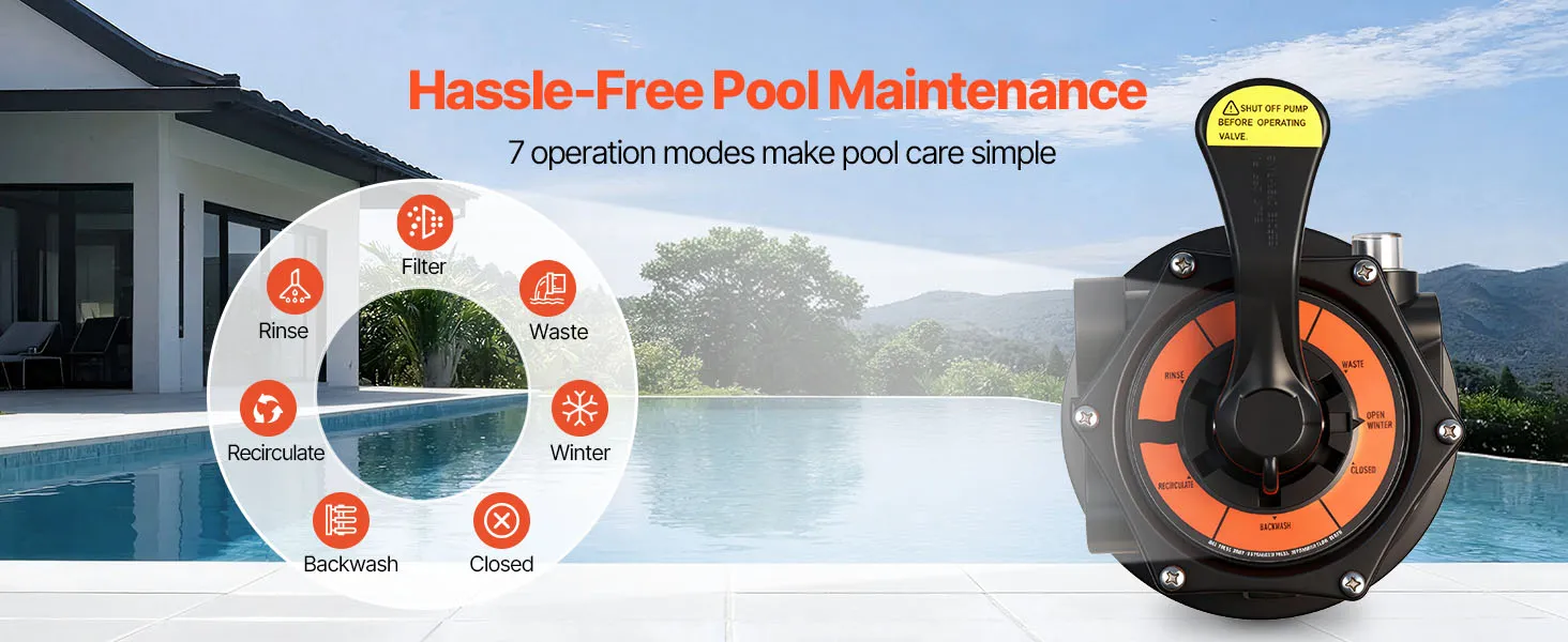 7 Modes, Easy to Operate: This sand filter for above ground pools features 7 simple modes: Filter, Backwash, Rinse, Recirculate, Waste, Winter, and Closed. We recommend using #20 silica sand for optimal filtration performance