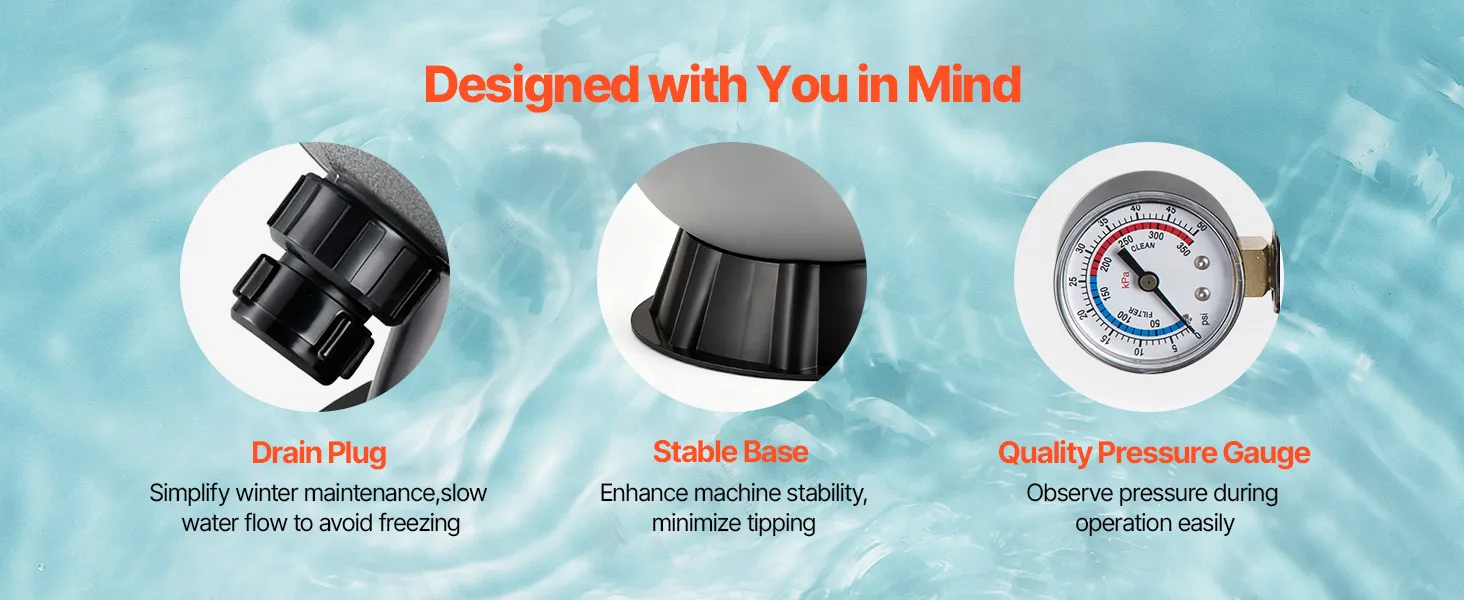 Every detail is crafted for your ease. From hassle-free seasonal care to steady operation, this sand filter for inground pool helps you handle pool upkeep with ease.