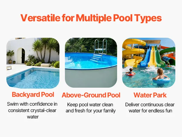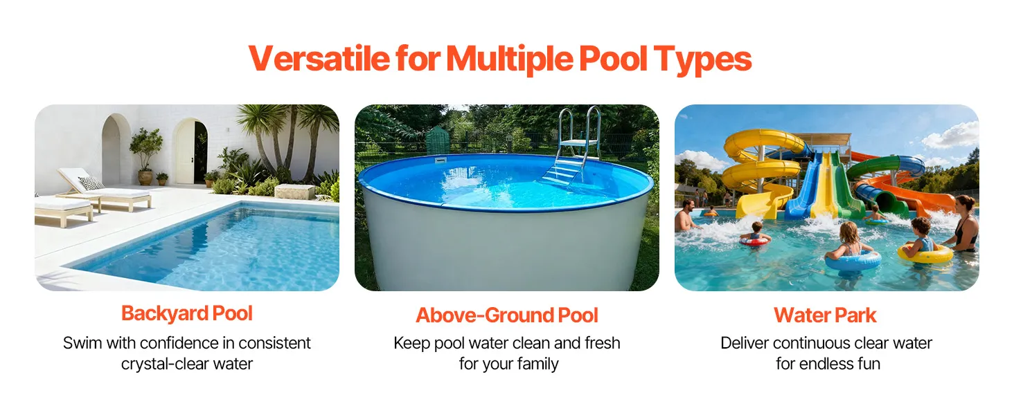 Meet All Your Pool Needs: Our pool sand filter system is versatile and works with all above-ground and in-ground pools, backyard pools, indoor villa pools, gym pools, and hotel pools