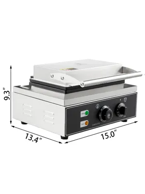 Equipped with parallel heating plates, made of cast-aluminum. The non-stick Teflon coating surface prevents sandwiches from burning. The single griddle is 5.8"x5.8"(147x147 mm) in size.