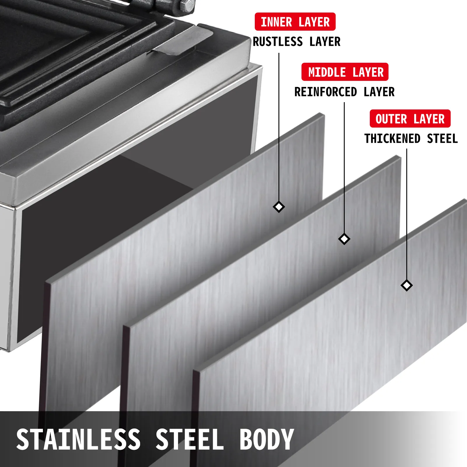 The handle of our electric sandwich grill is made of stainless steel, which effectively prevents the handle from overheating, practical and non-perishable.