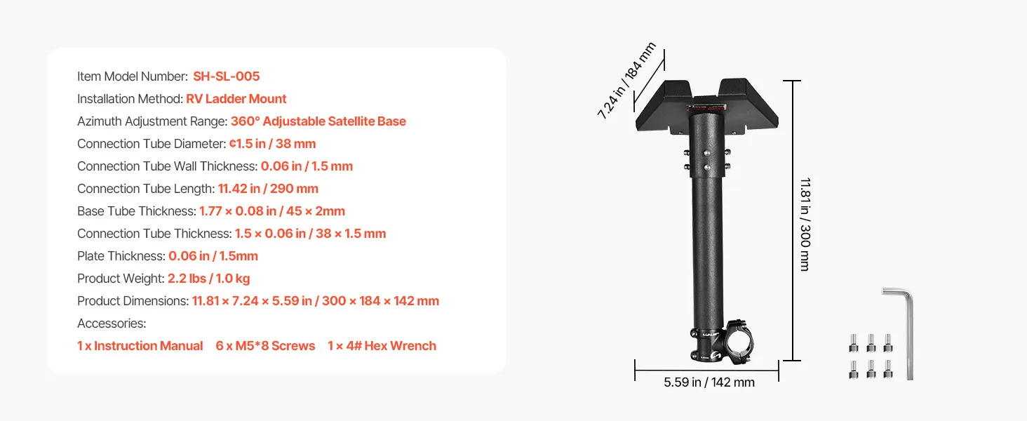 Built with quality materials and user-friendly design, this mount delivers stable and reliable satellite signal solutions for home, RV, and commercial use.