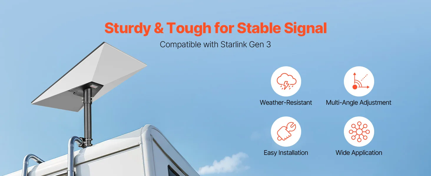 Multi-Angle Adjustability: Our starlink gen 3 features a 360° adjustable angle design, breaking traditional mounting limits. This mount allows full-range satellite signal tracking, ensuring the antenna remains aligned with the satellite at all times for optimal connectivity