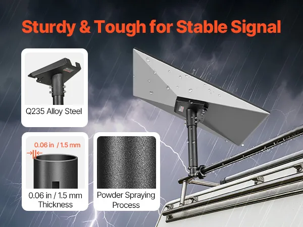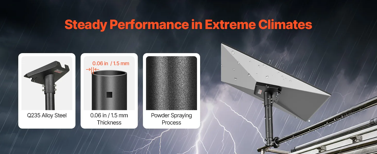 Weather-Resistant Steel Construction: Built with high-strength steel and a reinforced 0.06 in / 1.5 mm thickened design, this starlink mount stands strong against wind, rain, and corrosion. Delivers rock-solid stability and long-term durability, effectively resisting deformation and breakage even in harsh outdoor conditions