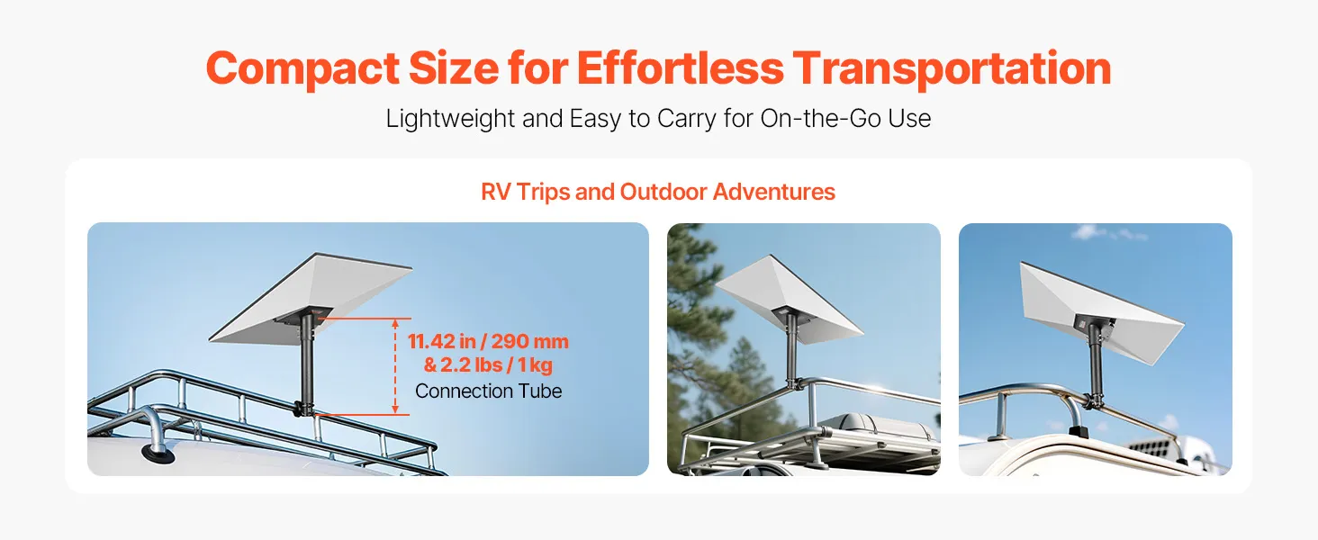 Travel-Friendly Design: Featuring a short and lightweight build, it contours to RV ladders without adding extra height or wind resistance. Easily clears urban height restrictions and underground garages without the need for removal. Compact and easy to store, it's the ideal companion for on-the-go connectivity