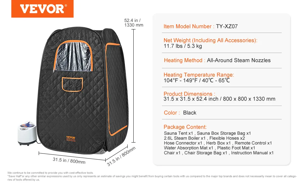 Private Sauna Space: Enjoy the comfort of a sauna room at home! Equipped with a stainless steel frame, dual-side zipper, and heated footpad, this tent creates a private SPA space just for you.