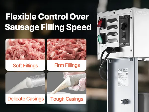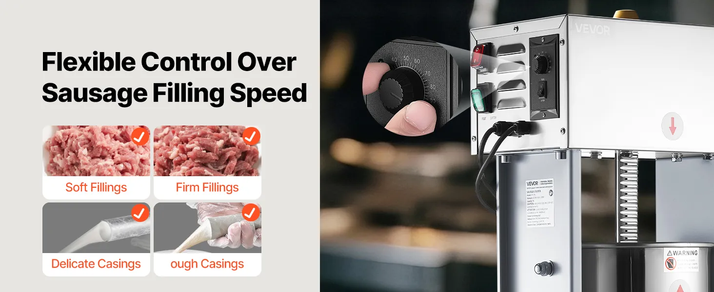 Easy to Use: This electric sausage stuffer comes with stepless speed adjustment to match different types of meat. Combined with a foot pedal, it allows hands-free operation without manual pressing, saving preparation time and making sausage making simpler and more efficient