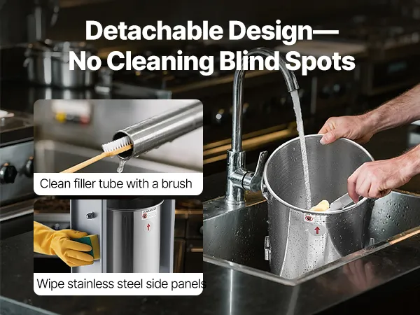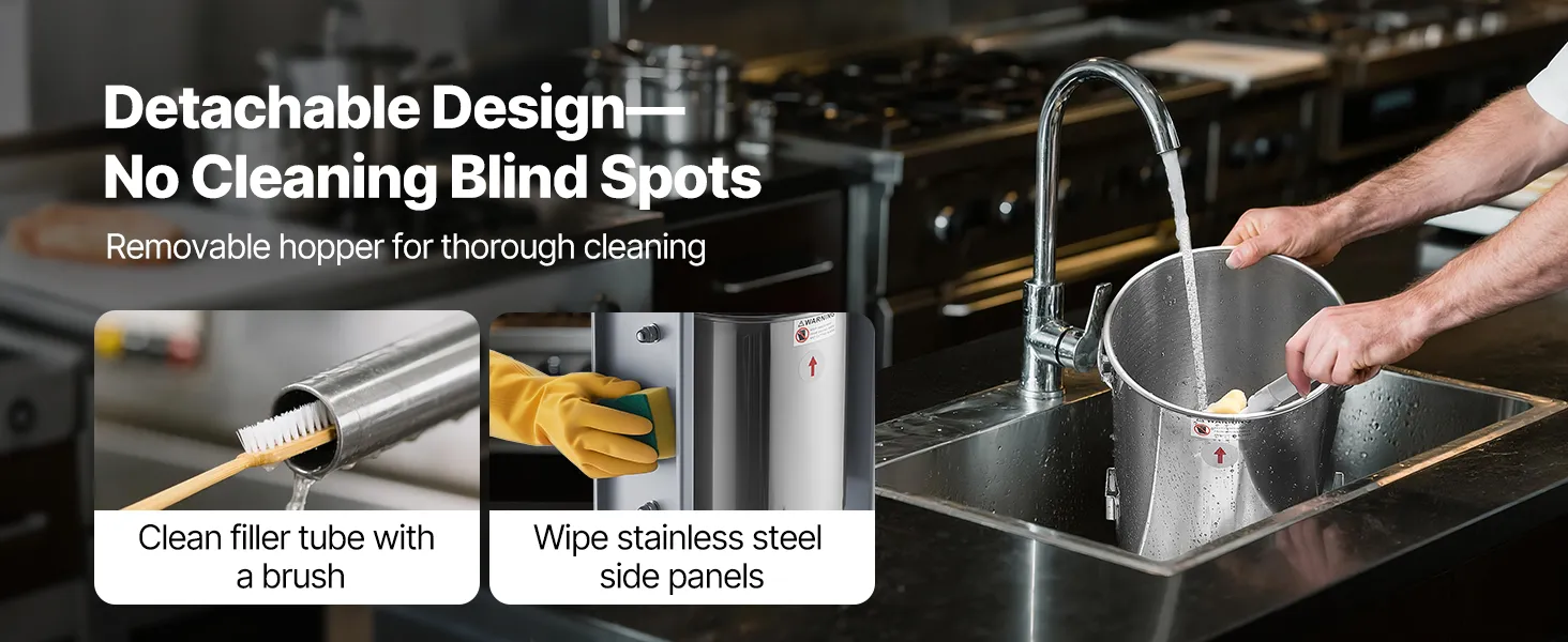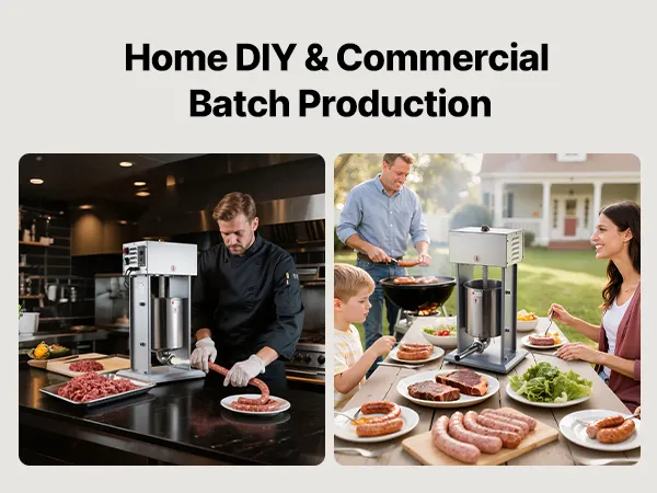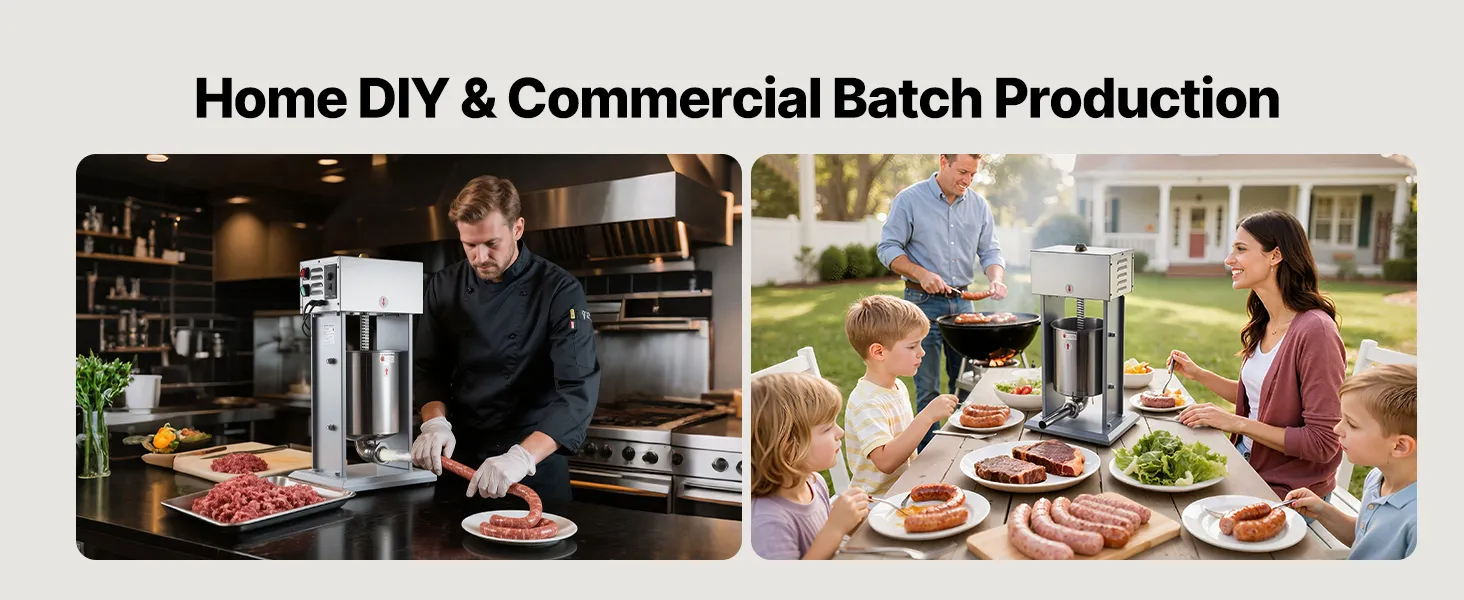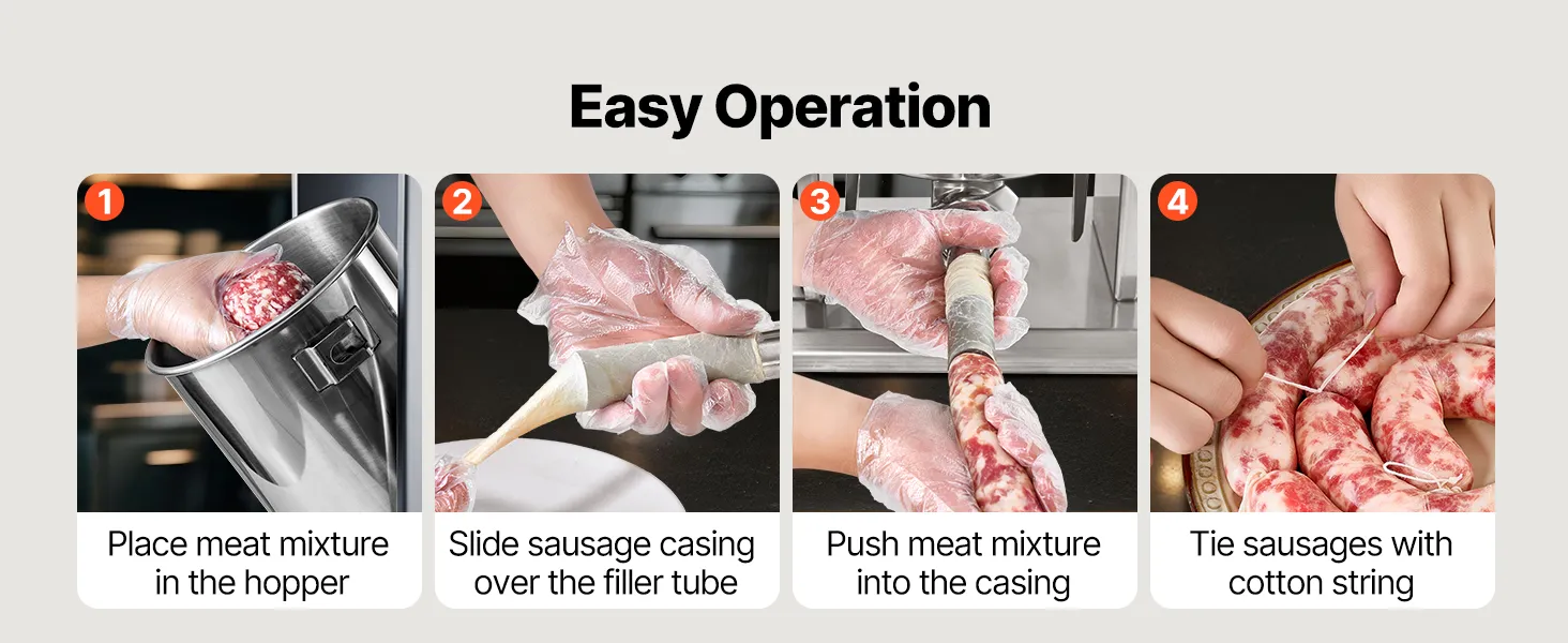 Simple Cleaning: This sausage filling machine is designed with removable components such as the barrel, piston, and tubes, all of which are dishwasher-safe. The stainless steel exterior is easy to wipe clean. Ideal for home use, commercial kitchens, hunting, or fresh pet food preparation
