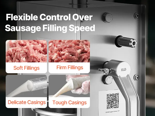 Two Speed Options: This manual sausage stuffer is designed with fast and slow gears. The high speed allows quick lifting and lowering, while the low speed is ideal for stuffing. The ergonomic handle is comfortable to grip, helping make the entire process smoother and more productive