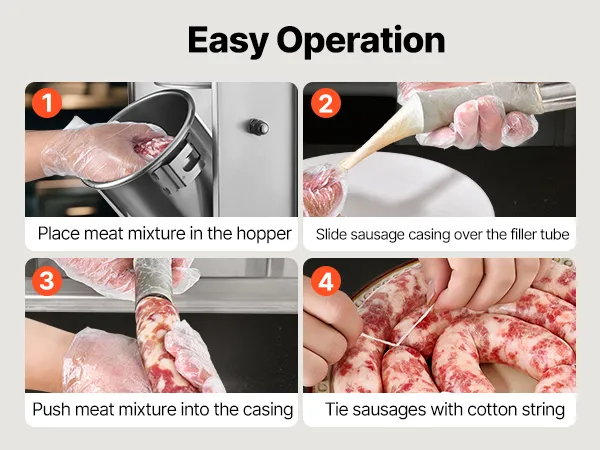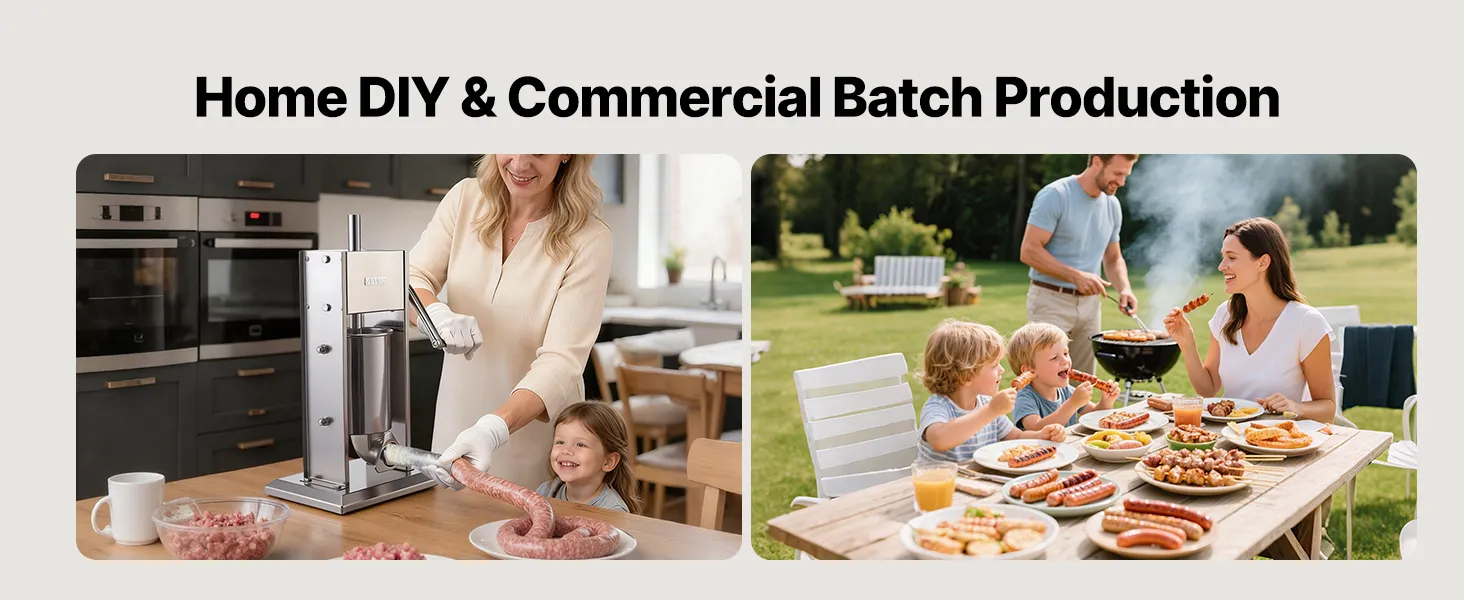 Hassle-Free Cleaning: This sausage filling machine features removable components such as the barrel, piston, and tubes, all of which are dishwasher-safe. The stainless steel surface cleans easily with a wipe. Suitable for home use, commercial settings, hunting, or pet food preparation, and also makes a practical gift