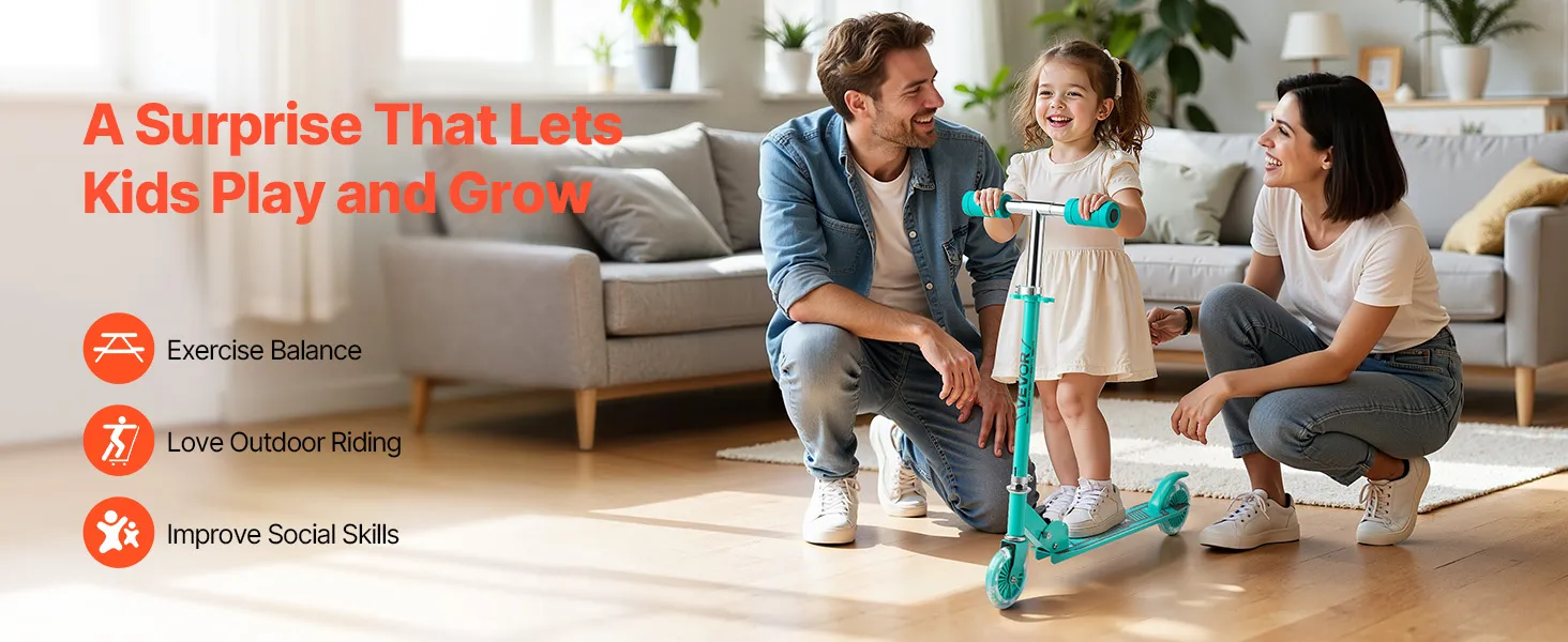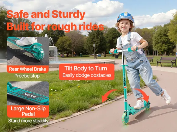 Lean-to-Turn Steering: Kids steer this scooter for kids by leaning—no handlebar twisting needed. This intuitive design helps kids develop balance and coordination. Ideal for beginners, it's easy to learn and fun to master