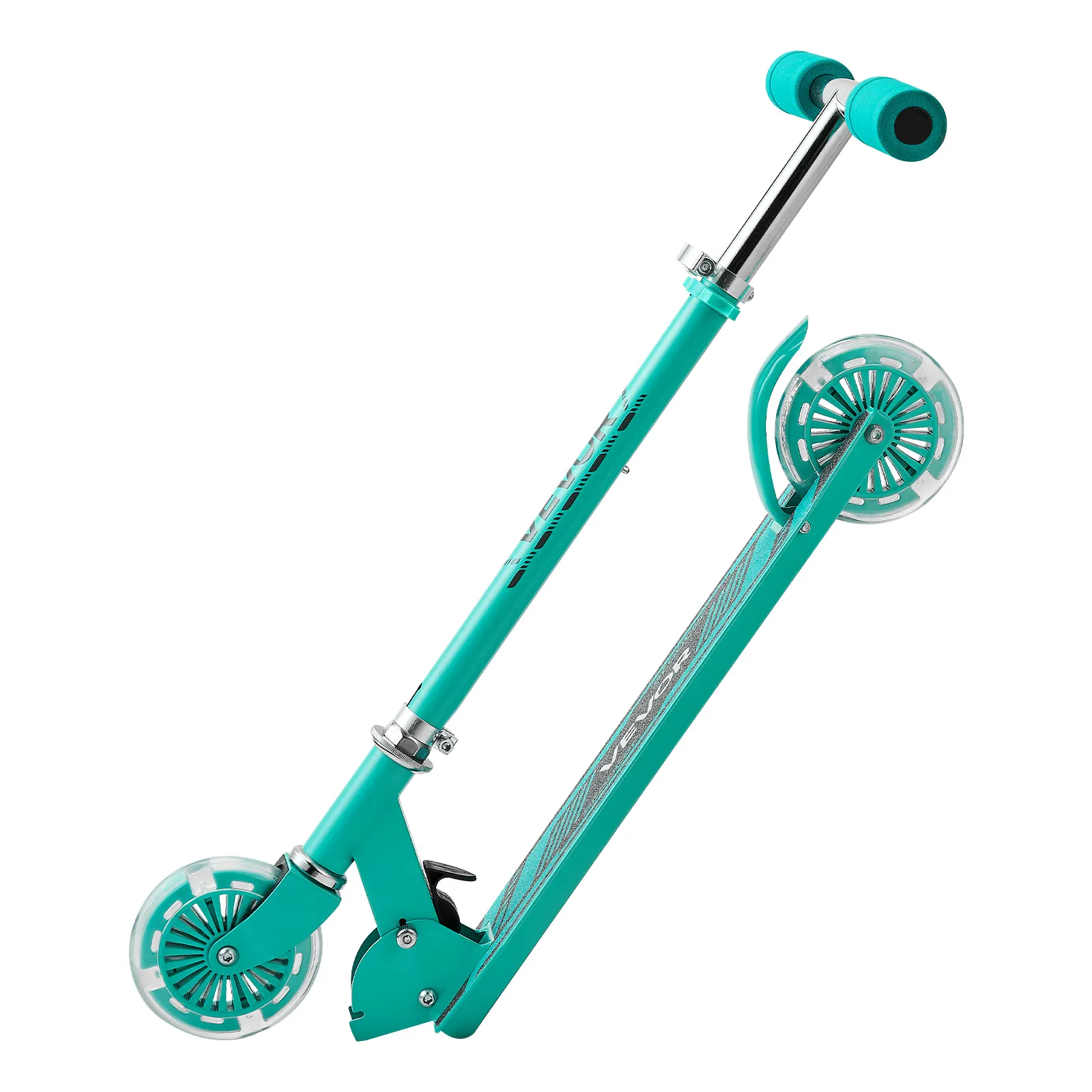 VEVOR Kick Scooter for Kids Ages 3+, 2-Wheel Toddler Scooter with Light-Up Wheels, Adjustable Height Handlebar, Wide Anti-Slip Deck, Foldable Lightweight Frame for Boys and Girls up to 49.9 kg, Green