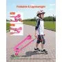 VEVOR Kick Scooter for Kids Ages 3+, 2-Wheel Toddler Scooter with Light-Up Wheels, Adjustable Height Handlebar, Wide Anti-Slip Deck, Foldable Lightweight Frame for Boys and Girls up to 49.9 kg, Pink