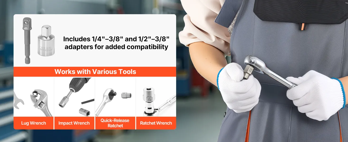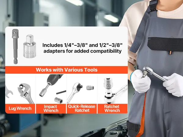 Works with More Tools: This nut extractor socket set is compatible with torque wrenches and electric drills. The included 1/4" to 3/8" and 1/2" to 3/8" adapters allow flexible setups, so you can switch tools easily