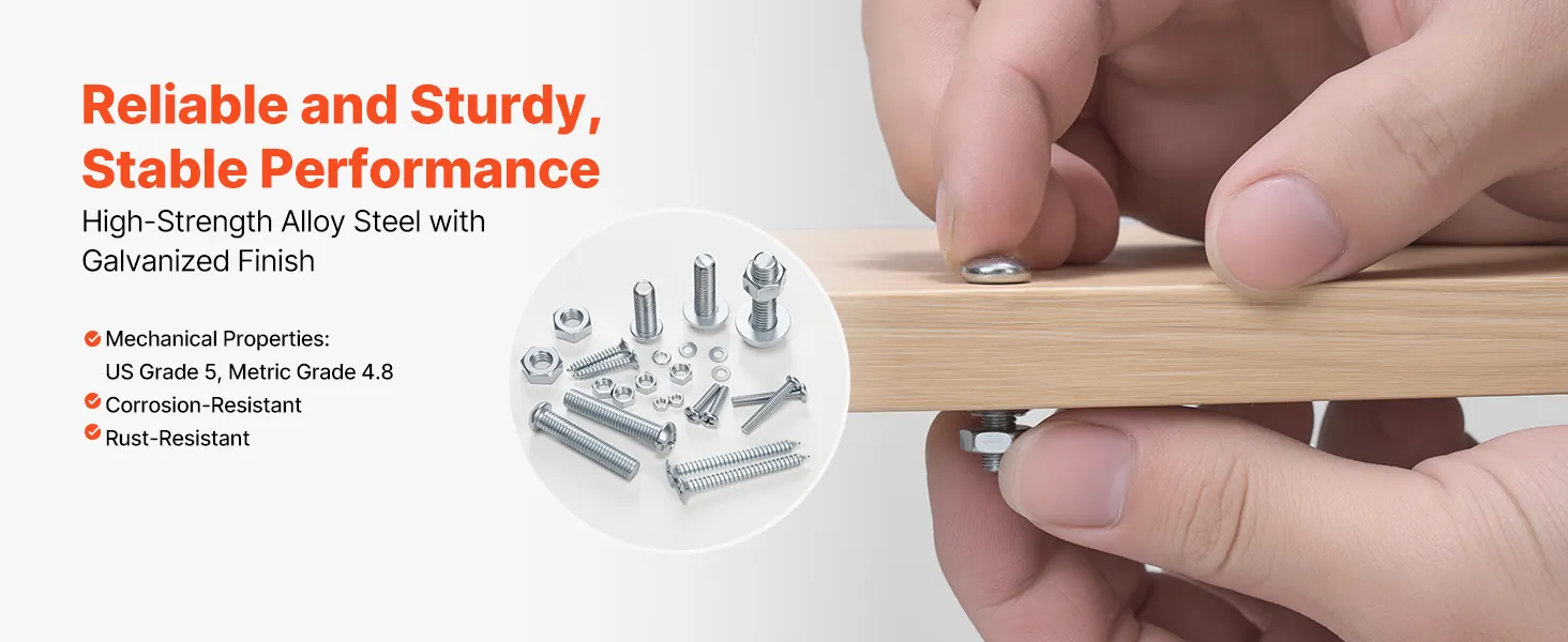 Precision Manufacturing: Each component is precisely machined to U.S. Grade 5 and Metric Grade 4.8 standards. With a 48-hour salt spray test, these bolts and nuts provide reliable fastening and won’t loosen or degrade over time